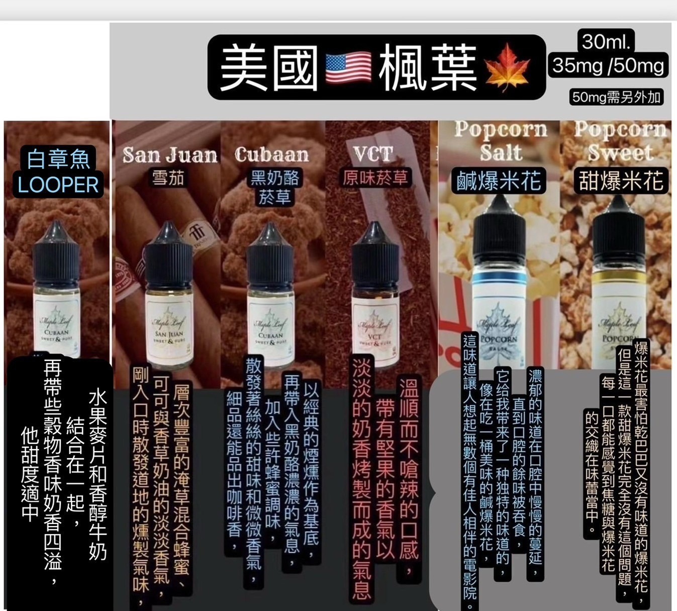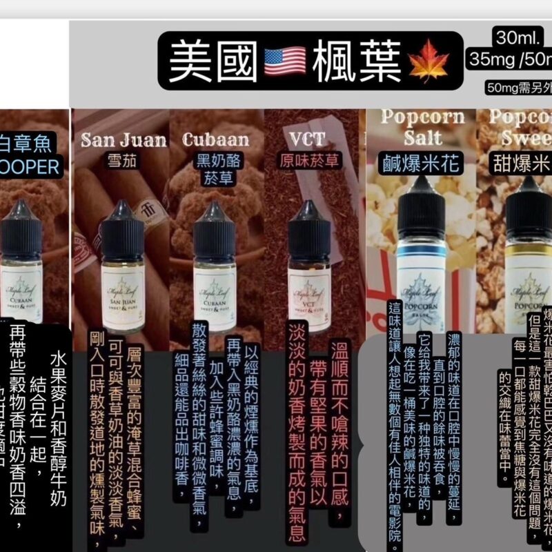 風味類型 VCT 草、古巴雪茄、美式穀物甜點