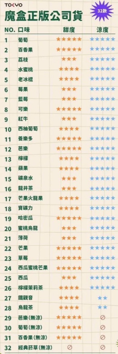 無涼水果 & 草口味: 特別針對不喜歡涼感的用户設計。